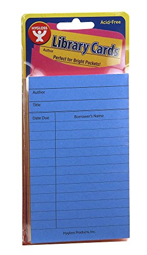 - 50 brightly colored library cards, size 3-inch x 5-inch, fits in standard size library pockets
