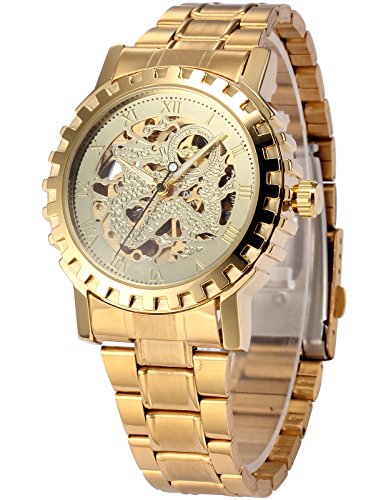 원본상품명: AMPM24ゴ?ルド ロ?マ?字 自動機械式 ドラゴン メンズ スケルトン アナログ スチ?ル バンド 腕時計PMW304