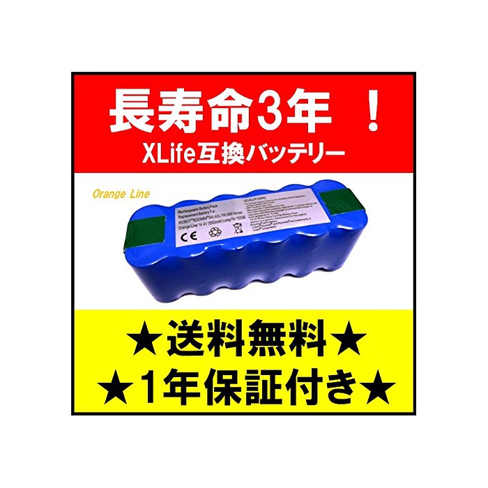 원본상품명: ルンバ用バッテリ? 長?命3年 長時間稼動 500600700800シリ?ズ?? 【1年保?付き Orange Line 】【互換品】