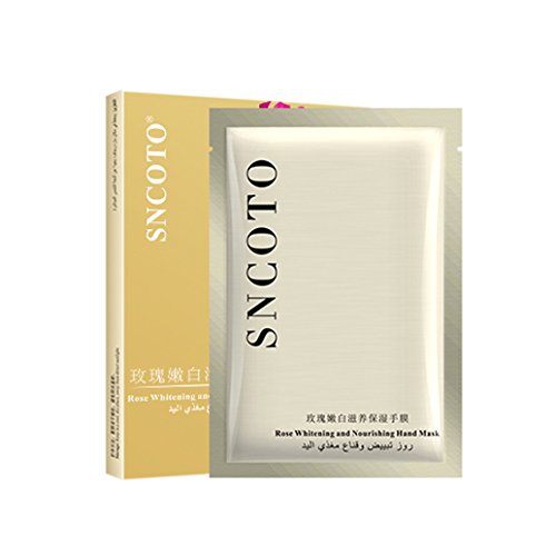What it is A line of hand care treatments, each with a different benefit, that offers 20-30 minutes of pure bliss.? What it is formulated to do? Inspired by Asian beauty rituals, the SNCOTO Collection hand masks provide an effective solution to meet every need. The single pair of non-drip, coated gloves will take care of your hands as you continue what you're doing. Each offers a skin-enhancing benefit.? RoseVitamin E Hand Mask:?Offers intense nutrition to nourish and soothe hands.? Provides hands with a more even skin tone for an antiaging effect.? Provides intense moisture for beautiful hands.? What else you need to know? This hand masks are pleasant to wear and are quick and easy to use.? How to use it? 1.Clean your hand,cut the opening of the hand mask. 2.Put on the hand mask,press the mask gently to fit the hand. 3.Tear paste,tighten it in the hand wrist,and stick. 4.Take off the mask after 20-30 minutes,clean with water,apply hand cream on. Satisfaction Guaranteed? The SNCOTO head mask includes a 30-day refund.Customer's satisfaction is our goal, if you are not satisfied with this product, any question, feel free to contact us and we will reach you at the soonest.
