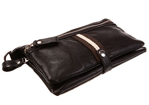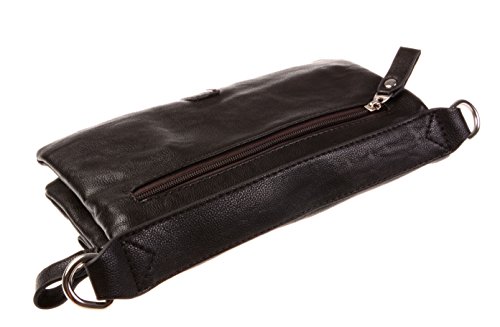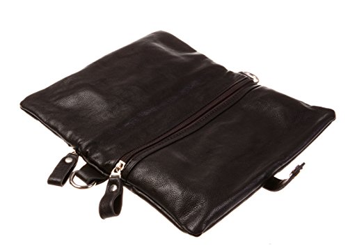 - Feature : Made of soft leather material, which is very smooth and flexible / Features : 2 layers-- 1 exterior zipper pocket and 1 inner zipper pocket included in the front layer; and 2 zipper pockets included in the back layer / Perfect for holding your notebooks,wallet,sunglasses ,papers and so on / Have removable and adjustable shoulder strap,you can have 2 carrying options (single shoulder,cross body ) / Overall dimension: Approx: 5.5 inch(H)*9.7 inch(L)*2.5 inch(D)