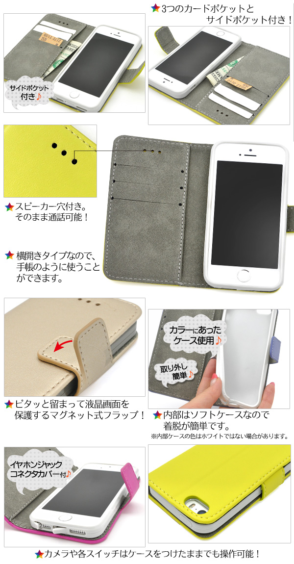※長時間接触していたり、強い力で擦れるとスマートフォンに色移りする場合がございます。