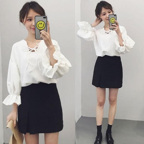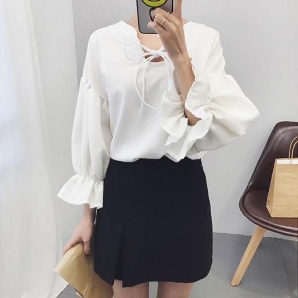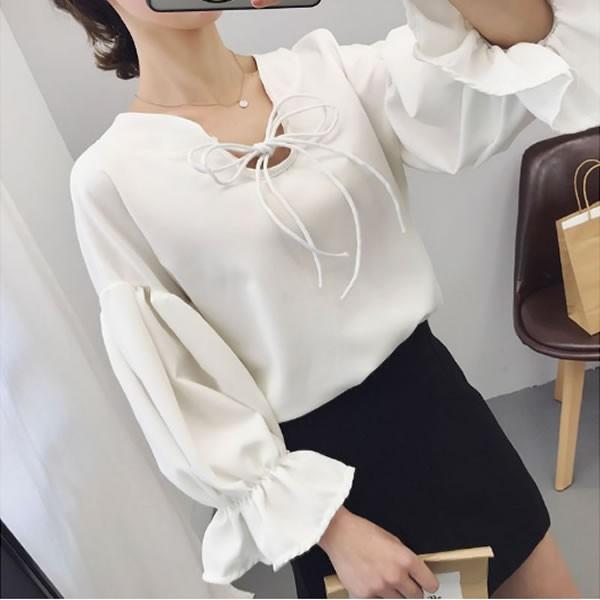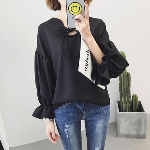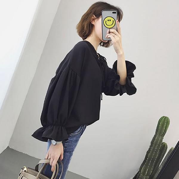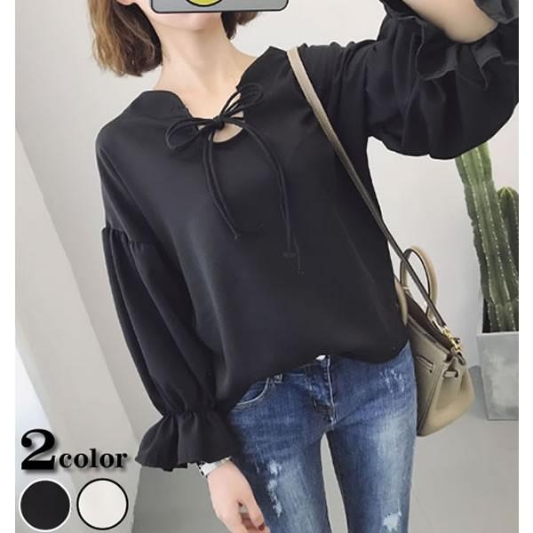 | バルーンスリーブ フロントリボン カットソー トップス 無地 長袖 黒 白[ネコポス可] 【バルーンスリーブ フロントリボン トップス カットソー シャツ レディース 女性 黒 白 春夏 肌見せ スリーブ モリ袖 ロンデルブラック】 | |