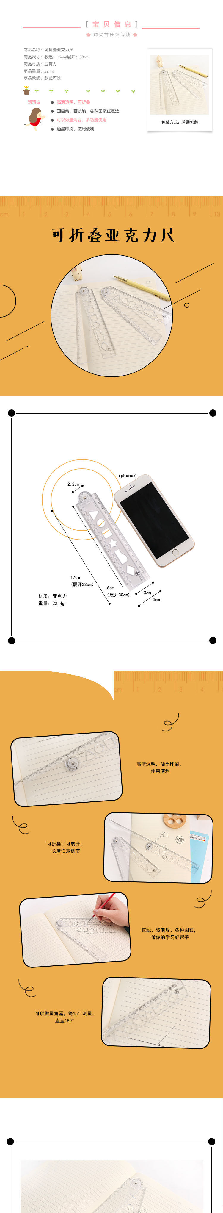 文具可折叠亚克力尺 学生 透明波浪多角度直尺 15-30CM