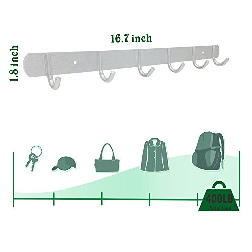 Hook Rail (UPGRADE THICKER) Super Sturdy Utility Rail Hooks, Key Rail, Utility Rail Hooks, Durable Rail Hook 6 Hooks Coat And Hat Rack Wall Mount Load Capacity Can Reach 400 Pounds.