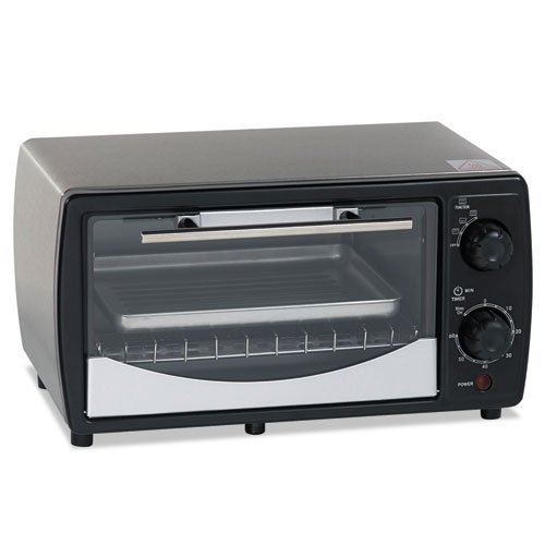 Versatile toaster oven provides full-range temperature control with toast and broil option settings. Convenient built-in timer with bell. Safety auto shut-off feature. Includes a crumb tray and a baking tray. Capacity Volume: 0.32 cu ft Width: 14 1/2quot; Depth: 11 1/2quot; Height: 8quot;.