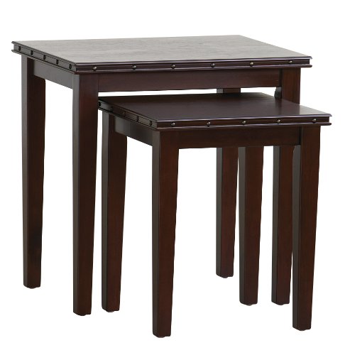 -. Feature : Dark espresso finish / Made with select veneers and solid / Nail head accents / Lower shelf for additional storage