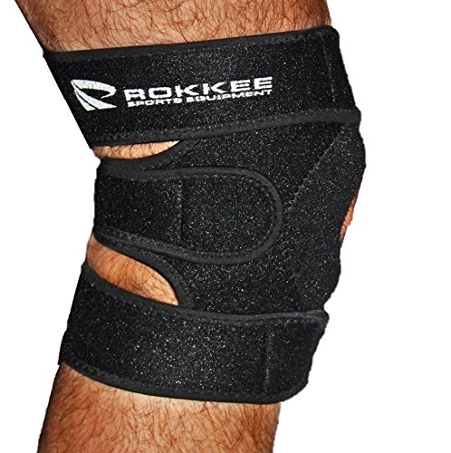 -. Title : Knee Support for all Sports By Rokkee Sports Equipment-Premium Quality-Waterproof-Black Breatheable Neoprene-Helps with Slight Sprains, Unstable knee, Knee Dislocation, Lateral and Collateral Ligament Injury, Running, Walking, Arthritis-Adjustable Compression-Open Patella Design-Size From 13" to 18"-Three Strap System-Free Replacement or Money Back Guarantee