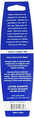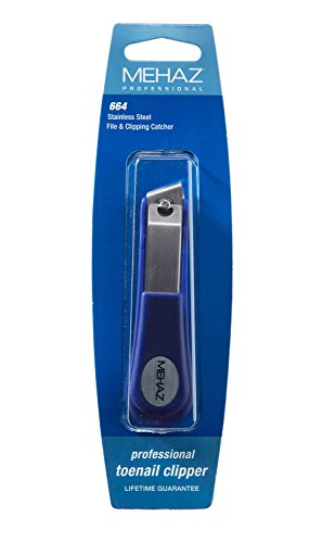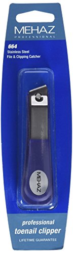 Studio : Mehaz Publisher : Mehaz Binding : Misc. Product Description Heavy-duty stainless steel toenail clipper features a straight edge blade, ergonomically designed at an angle for ease of use. Handle can be adjusted for right or left-hand use. Includes built-in file and clipping catcher.
