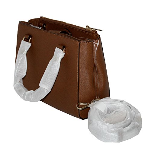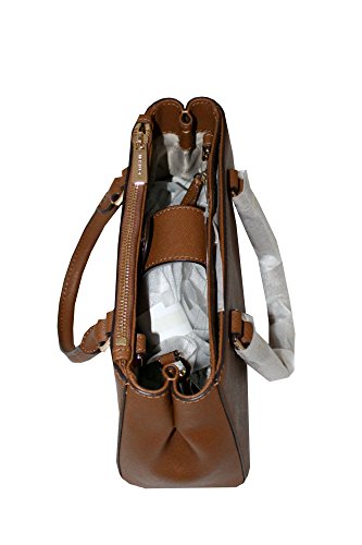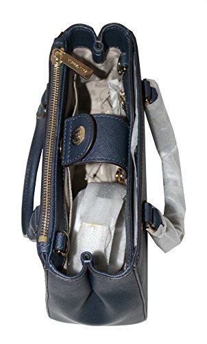 Product DescriptionNEW STYLE 2018 BEAUTIFULLY Saffiano Leather IS SIMPLY GORGEOUS ! Double handle strap , adjustable cross body strap. Measurements: 9" x 6" x 3". Gold Tone hardware details. 3 compartments. * ONE ZIPPERED . main compartment.COMPARTMENT IN REAR WALL INTERIOR. * INTERIOR :4 slip pockets, 1 zip pocket.AUTHENTIC0