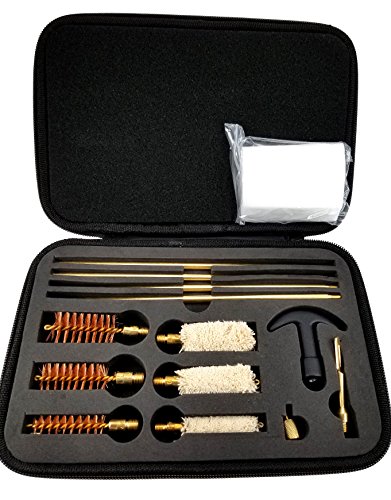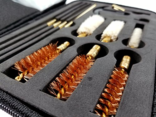 Universal Shotgun cleaning kit for shot guns. Compact, zippered case holds all 14 pieces of this kit and easily fits into your range bag.