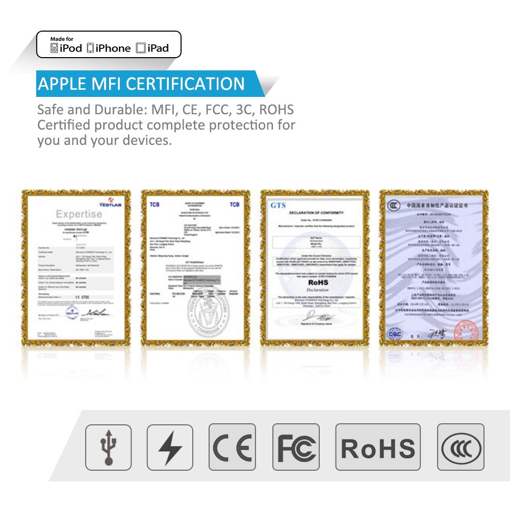 Apple certified, MFi (made for iPhone/iPod/iPad) lightning cable,with authorization chip issued by Apple to ensure 100%compatibility with any Lightning device