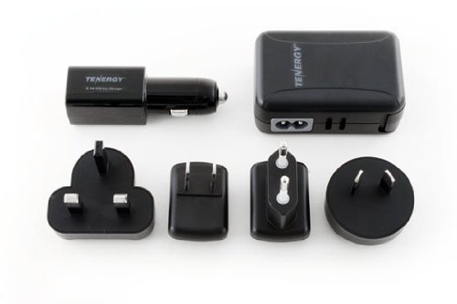 Tenergy 2 in 1 Travel Power Plug and Adapter Kit (4 AC Plugs & 1 Car Adapter)