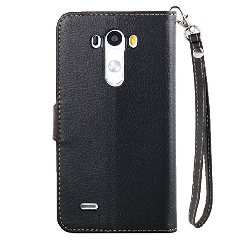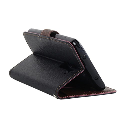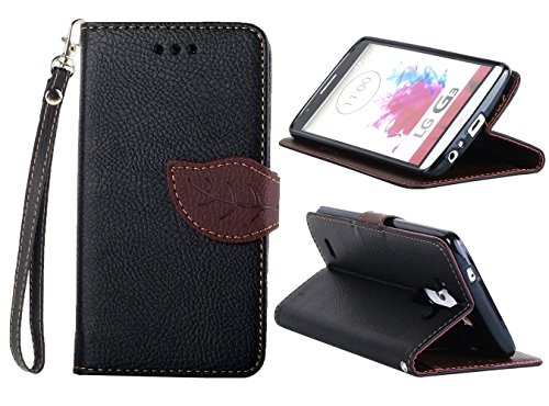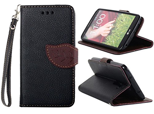 - Title : Premium Leaf Buckle PU Leather Flip Wallet Credit ID Card Slot Holder Wrist Strap Phone Case With Stand --Retail Package W Screen Protector --Black