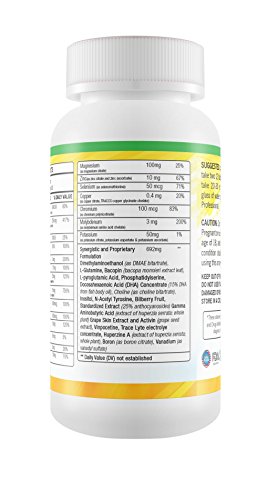 60 TABLETS provide a 30-day supply of brain-boosting support. Easy-to-swallow tablets are vegetarian friendly, and cause no unpleasant aftertaste