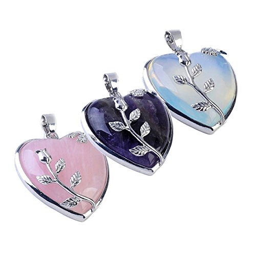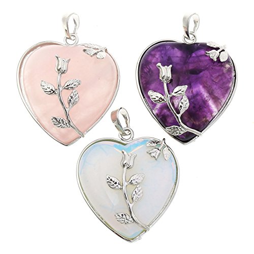 - Title : Top Plaza Natural Amethyst/ Rose Quartz/ Opalite Healing Crystal Gemstone Heart Pendant Necklace