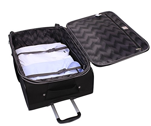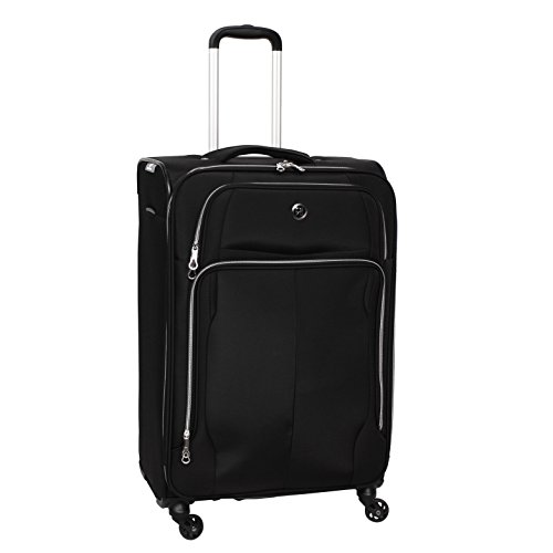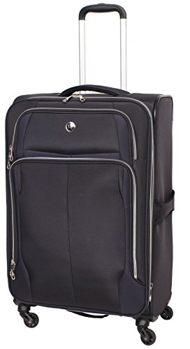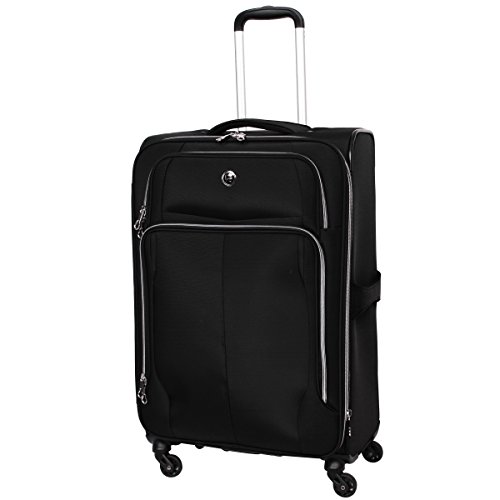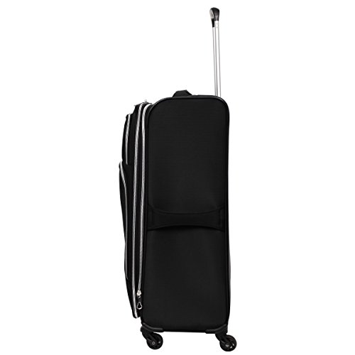 -. Feature : Ultra lightweight construction / Bottom polypropylene tray for added durability / 4 Spinner wheels for easy mobility / Durable dobby nylon body material / 17x9.5x25
