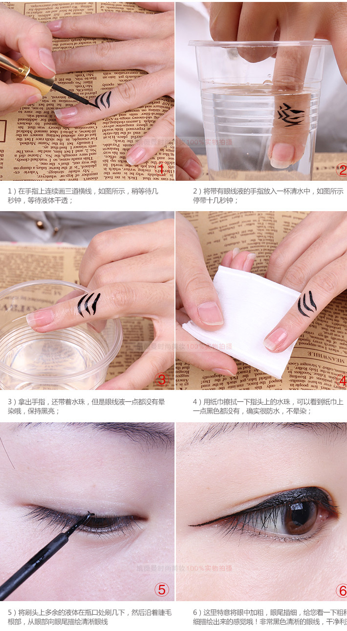 4: for the initial practice painted Eyeliner people may be in the back of the hand painting a few strokes, familiar with the painting eyeliner.