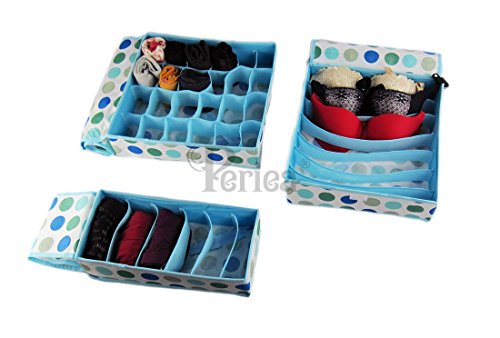 -. Title : Periea - Pack of 3 Drawer Organizers for Bras, Underwear, Socks & Ties - Faye (Turquoise)