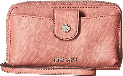 Keep everything you need all in one place with the Nine West® Margaux SLG Phone Wristlet. Made of synthetic leather. Zip-around closure. Wristlet strap. Exterior features a slip pocket at the front and a zip pocket at the back. Lined interior features an ID window, 12 card slots, and additional slip pockets. Imported. Measurements: Bottom Width: 7 in Depth: 1 in Height: 4 in Accessory Strap Length: 12 in Accessory Strap Drop: 6 in Weight: 5.8 oz This product may have a manufacturer's warranty. Please visit the manufacturer's website or contact us at warranty@support.zappos.com for full manufacturer warranty details.Feature