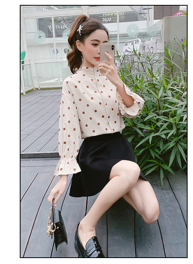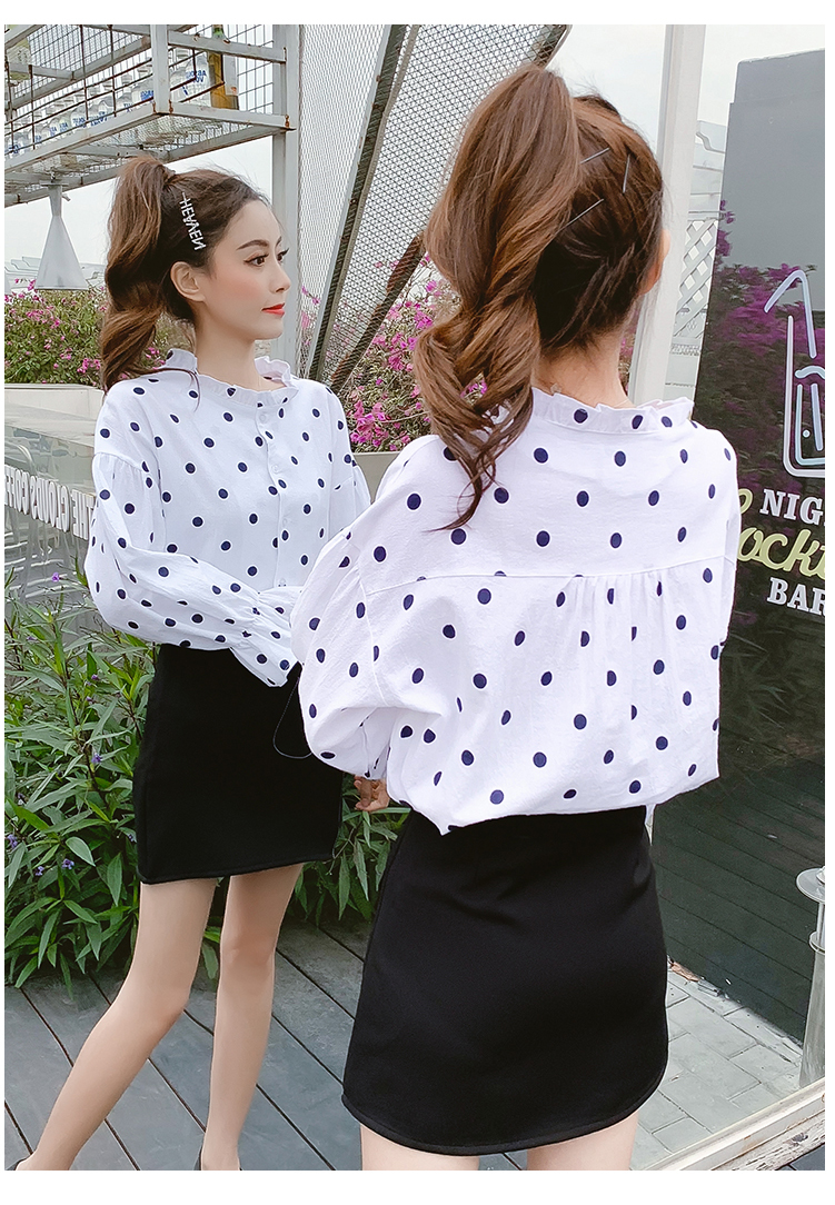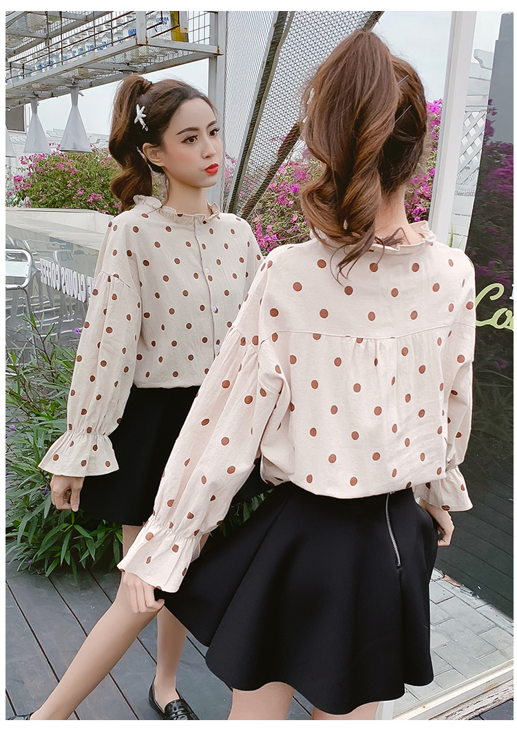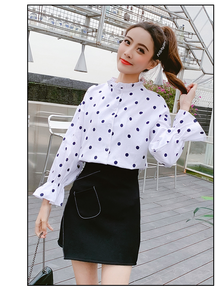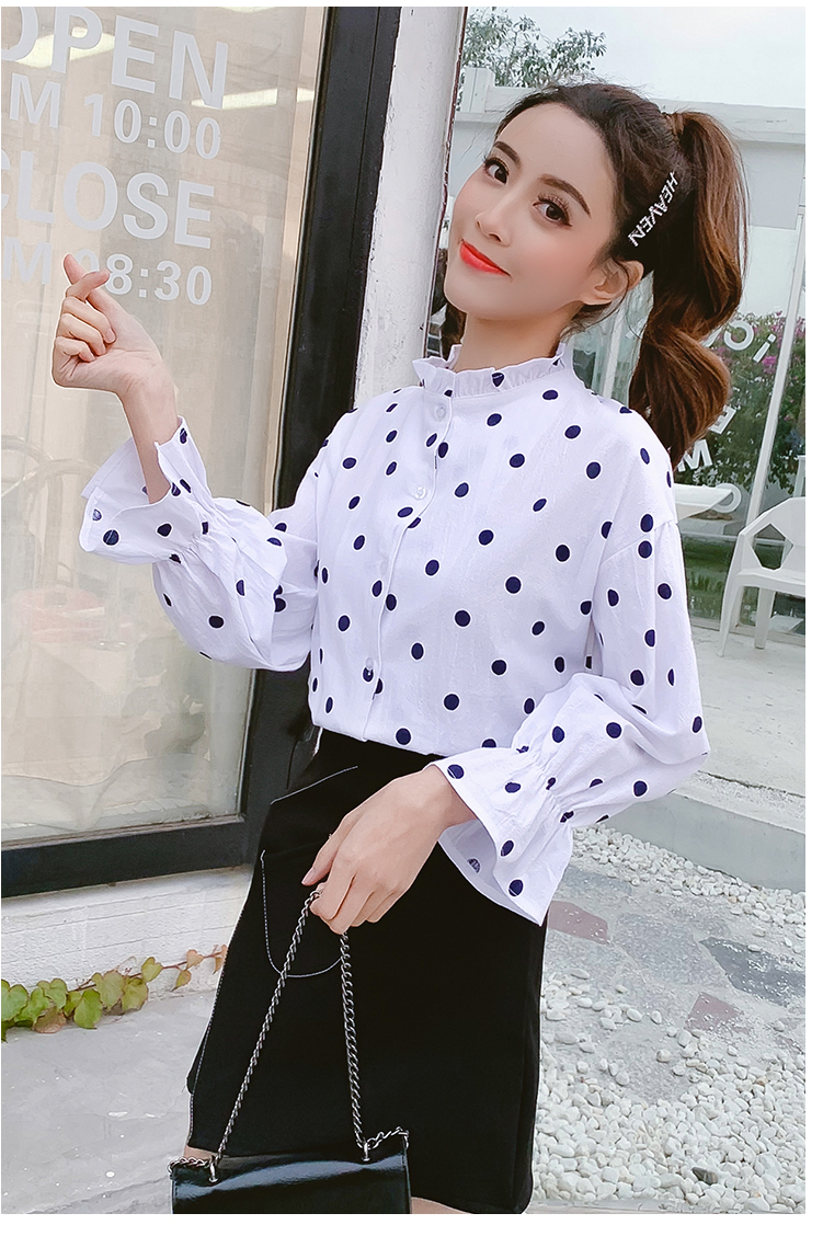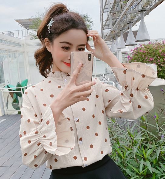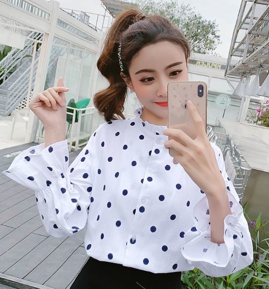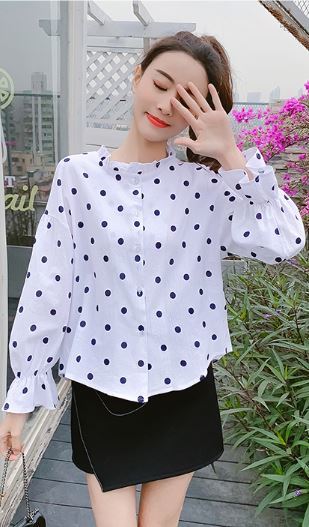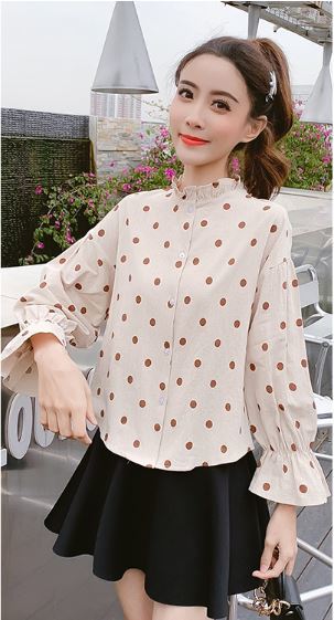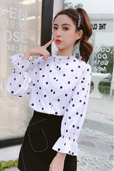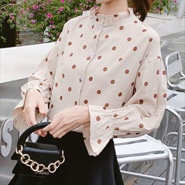 襟と袖のフリルが長袖ブラウスのご紹介です。