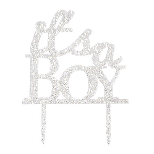 Glitter Acrylic It's A Boy Cake Topper (Silver)