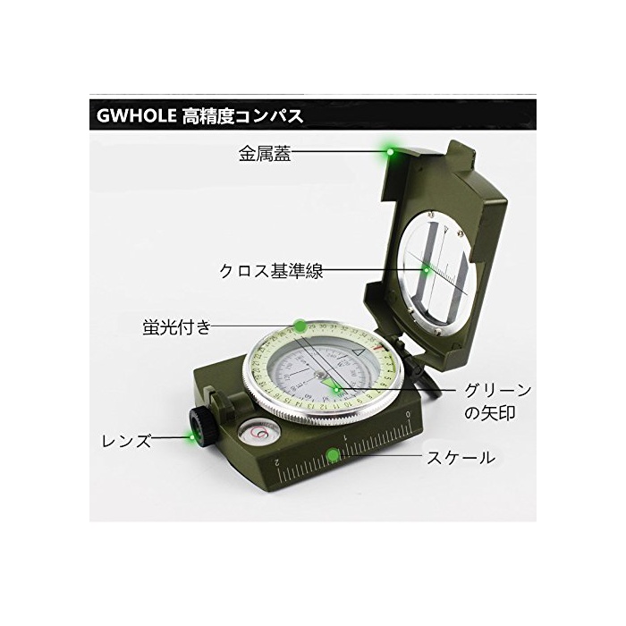 원본상품명: GWHOLE 方位磁針 高精度コンパス オイルコンパス 軍用コンパス ミリタリコンパス 折りみ式 多機能/方位磁針/防水/夜光 【1年安心保】