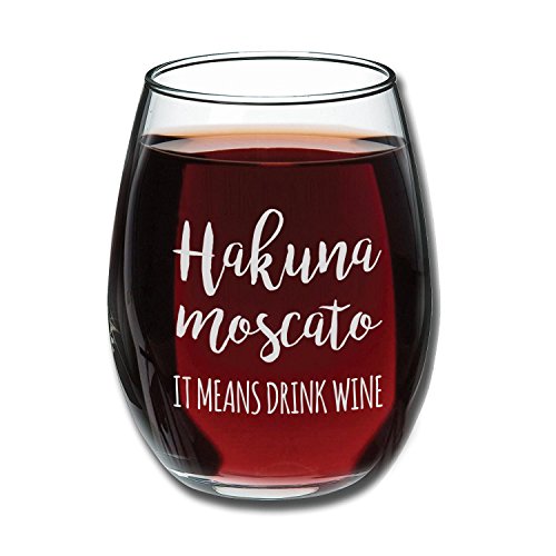 CAUTION: Drinking wine from this libbey glass may cause one to drink more wine! Ever ask yourself "I need a wine glass that fits my style?" This wine glass is the perfect choice after a long, rough day or a humorous start to enjoying a drink with friends. This wine glass quote will ring true with most avid vino fans and start a conversation of laughter and jokes. WINE LOVER? WINE ENTHUSIAST? OCCASIONAL WINE DRINKER? The wine glass makes drinking your favorite wine, red or white, vino, spirits, or adult beverage lol funny guaranteed! An affordable wine gift solution: Thinking of a unique gift idea can be daunting task. The Hakuna Moscato wine glass gift is an inexpensive present or wine accessory for any wine lover or enthusiast (men or women): Whether you need a 21st birthday gift or 50th birthday gift, Christmas present, stocking stuffer, housewarming gift, hostess gift, wedding or anniversary gift (his and hers mr and mrs), girlfriend gift, gift for your parents (mom and dad), best friend, sister, daughter, novelty gag gift, retirement gift, or bachelorette / bridal shower gift, we've got you covered. Rest assured our hilarious wine glasses are ready to gift wrap, packaged in a box strong enough to ship. Just click 'Add to Cart' for your hassle-free gift giving experience! 0 |