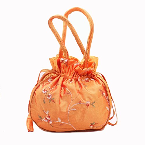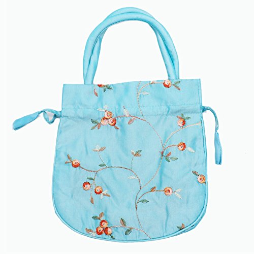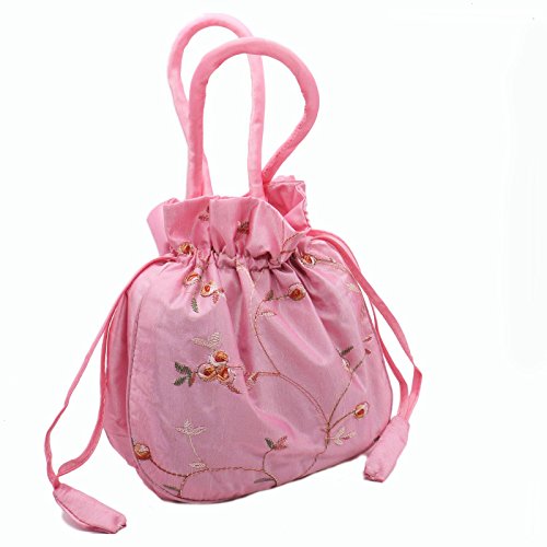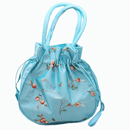 MAISHO 3PCS Soft Silk Embroidery Brocade Drawstring Pouch Drawstring Silk Bag Jewelry Bag With Hidden Handle (Purple, Watermelon Red, Blue)