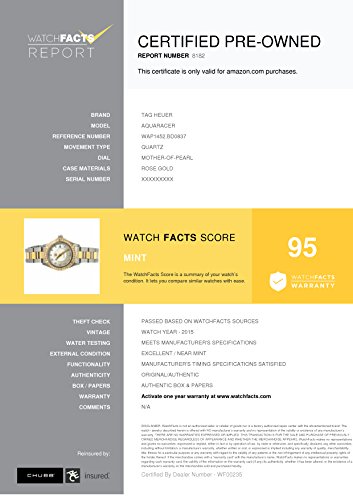 -. Feature : Tag Heuer Aquaracer WAP1452.BD0837 with mother-of-pearl dial / Authenticated by WatchFacts. Grade Rating: 95 / Condition: Mint / Comes with original box and manufacturer's papers offered with this watch / Quartz movement / Watch year: 2014