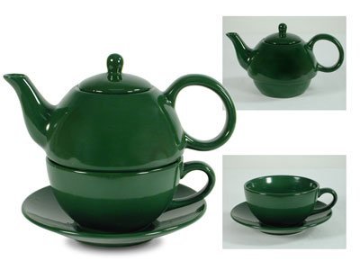 Studio : Online Stores, Inc Publisher : Online Stores, Inc Product Description We designed this Tea for One to meet the needs of our many teashop and restaurant customers, who want a larger Tea for One with a saucer. Our Tea for One has a generous 15 oz teapot, an 8 oz cup and a large saucer. The gloss finish matches our hunter green teapots and sugar and creamer sets. These are durable products and they are dishwasher and microwave safe. 0