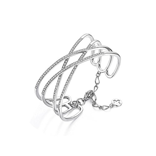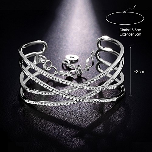 -. Feature : Fahion criss cross design wide bangle with sparkling cubic zirconia, suitable for fashion ladies! / AAA Cubic Zirconia / Material: 18k rose gold plated/18k White gold plated / Width: 30mm,Net Weight: 27.9g / FREE one black gift box!!!