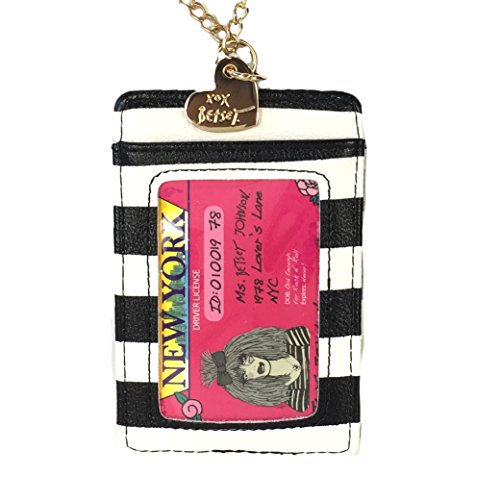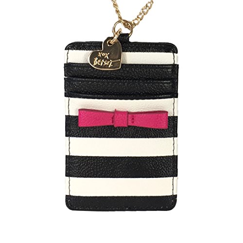 (Betsey Johnson)/Accessories/Wallets, Money Key Organizers/DIRECT FROM USA/Betsey Johnson Striped Bow ID Case On A Chain Lanyard, Black/White/Pink