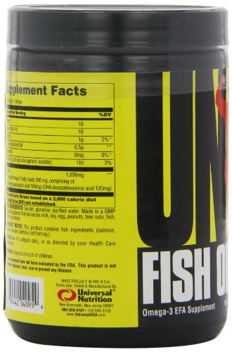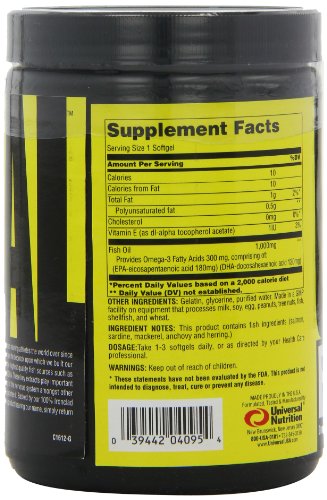 Universal’s Fish Oil contains the purest, molecularly distilled, omega-3 fish oils extracted from the highest quality fish sources such as salmon, sardine, mackerel, anchovy and herring. Each softgel contains a potent dose of the key fish oil extracts, EPA and DHA. These key extracts play important roles in immune function, joint health, brain health, natural hormone synthesis, healthy heart function and maintenance of the nervous system amongst other things.Feature