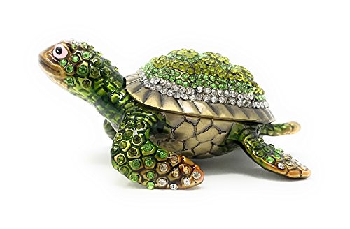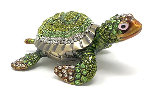 Bejeweled & Enameled Sea Turtle Trinket Box by Kubla Craft, Covered with Austrian Crystals