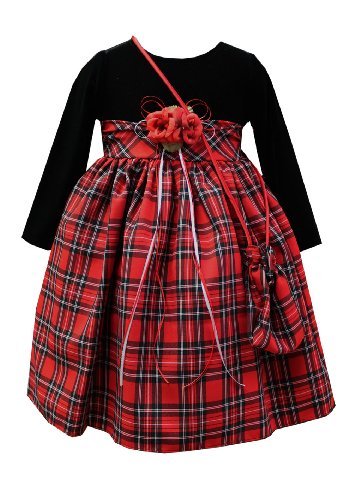 Perfect for the Winter Holiday Season ... New Longsleeve Velvet Plaid Dress with Matching Sachet Bag; Longsleeve Velvet Bodice with Plaid Waist Band Removable Rose Bow; Pleated Plaid Skirt with Built in Slip for Added Fullness ; Back Zippered Closure with Tie Bow Sash for Customized Fit; Matching Plaid Sachet Bag; Made in USAFeature