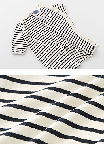 ≪素材≫通気性が良く滑らかな肌触りの先染めボーダー天竺を使用しました程よい厚みで、特に春・秋におススメの素材です冬場に着せる場合はお部屋着には良いですが、外出着には不向きです