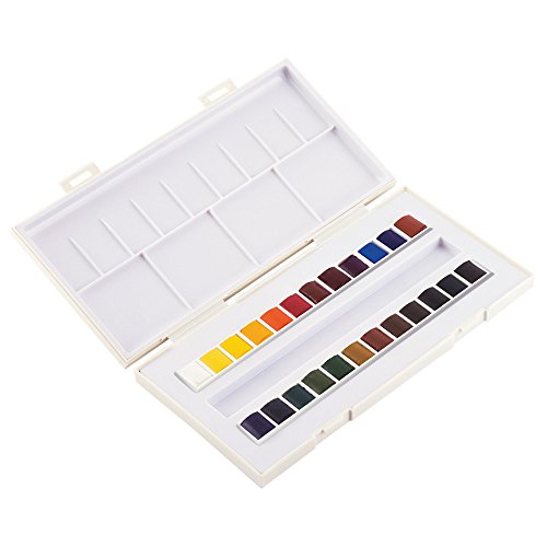 Sennelier La Petite Aquarelle Watercolor Paint Set - 24 Half Pan Plastic Tray With Elastic Hand Strap - Student Grade Watercolor Paint Set - [24 Half Pans]
