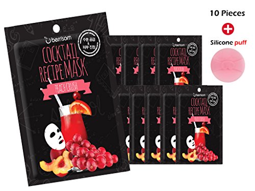 -. Title : [Berrisom] Cocktail Recipe Mask Sheet - Peach Crush(10pcs) + Silicone Puff