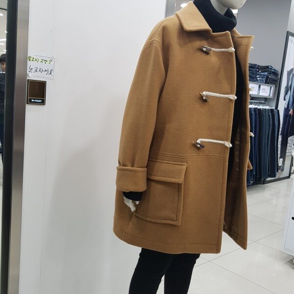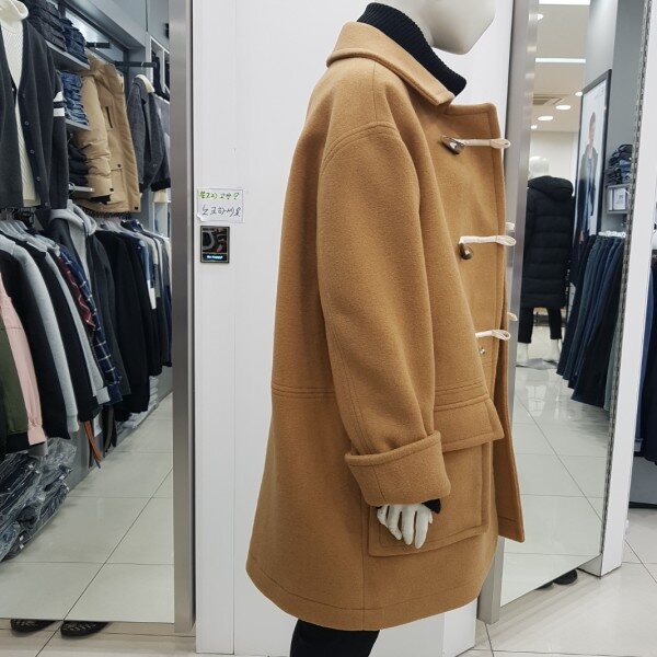 여성전용...오버핏으로 여유있게 입을수 있는 더플코트 소매부분은 롤업해 귀여운 스타일링이 가능합니다 f 사이즈만 나오는거라서 55~77까지 입으실수 있어요 많이 부한 느낌없어 착용컷 핏감이 너무좋고 모 혼방이므로 겨울에 따뜻하게 입을수 있어서 넘 좋아요