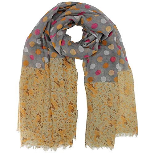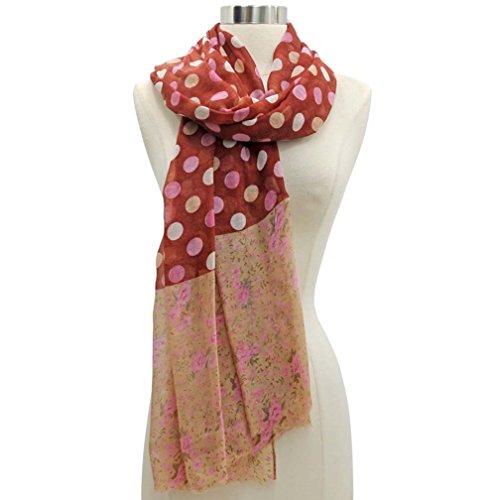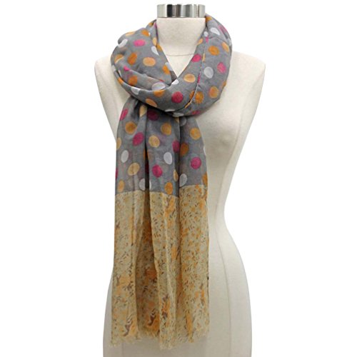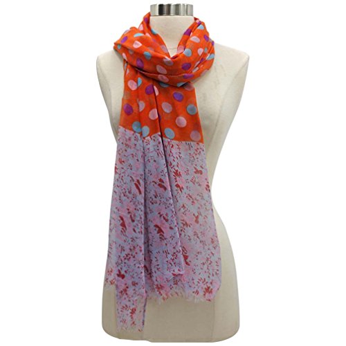 Studio : Luxury Divas Publisher : Luxury Divas Binding : Apparel Product Description Simply beautiful, this long sheer scarf wrap sports a brightly colored polka dot and floral printed pattern. Each end of this stunning scarf is finished with short fringe trim. This versatile fashion accessory can be worn as a scarf around the neck, a shawl, or even a pareo wrap to cover up your bathing suit. The generous size of this scarf shawl and the gorgeously designed print makes it easy to coordinate with any outfit. This scarf is made from 100% polyester.