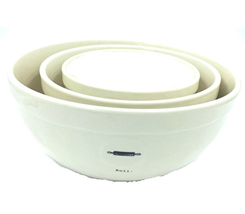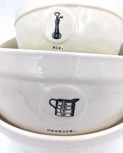 Artisan Collection Rae Dunn Set of 3 Nesting Mixing Ceramic Bowls - Roll, Mix, Measure