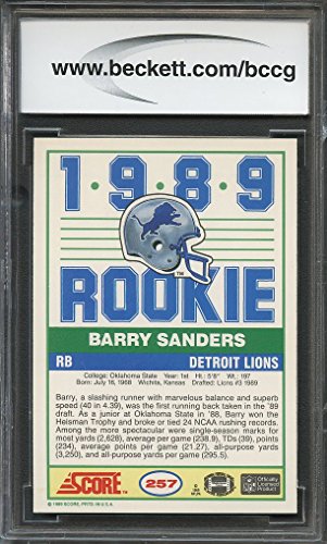 1989 score #257 BARRY SANDERS detroit lions rookie (50-50 CENTERED) BGS BCCG 10 Graded Card