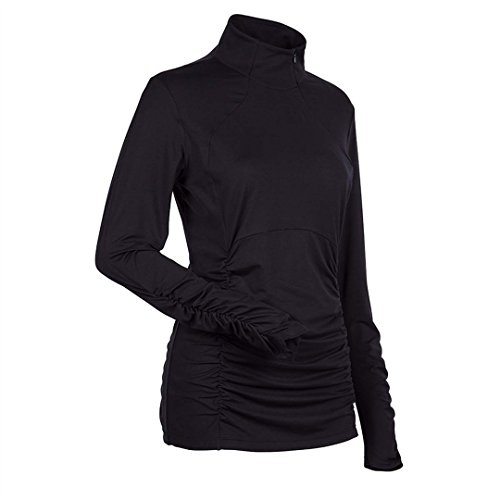 Product Description1/2 Zip T-Neck with Zipper at Neck, Natural Wicking Properties and Peached Fabric. The jacket has a ruching along princess seams.0