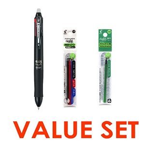 Pilot Frixion Ball 4 Click Retractable 4 Color Gel Ink Erasable Murti Pen 0.5mm Black Body & Each 4 Color Refills / Black - Blue - Red - Green