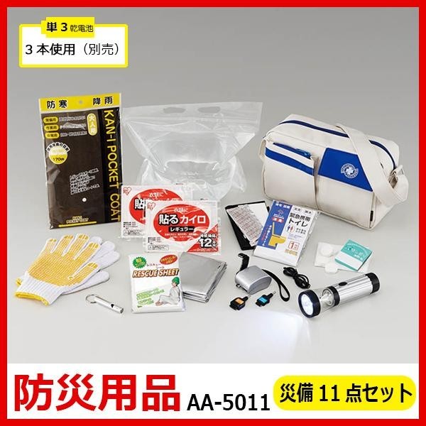通常災害発生から救護体制が整うのに3日間かかると言われています。その間を自力で乗り切るためにも平時にこそ備えるべき事を実践してパニックを起こさない心構えが必要です。災害時に役立つアイテムをひとまとめにした11点セットです。 |
