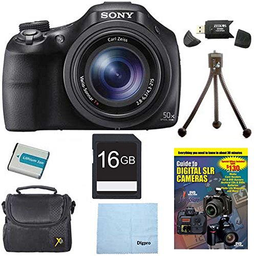Sony DSC-HX400V/B DSCHX400VB DSCHX400V HX400 20 MP Digital Camera Bundle with 16GB High Speed Card, Spare Battery, Padded Case, DVD Photography Tutorial, SD Card Reader, Table top Tripod, LCD Screen Protectors, and Lens Cleaning Cloth