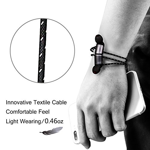 -. Title : Bluetooth Headphones, Wireless 4.1 Textile Cable IPX7 Waterproof Sports Headset for Running Workout Gym, Magnetic Sweatproof Noise Cancelling Earbuds, In Ear Stereo Earphones with Mic & Volume Control