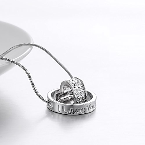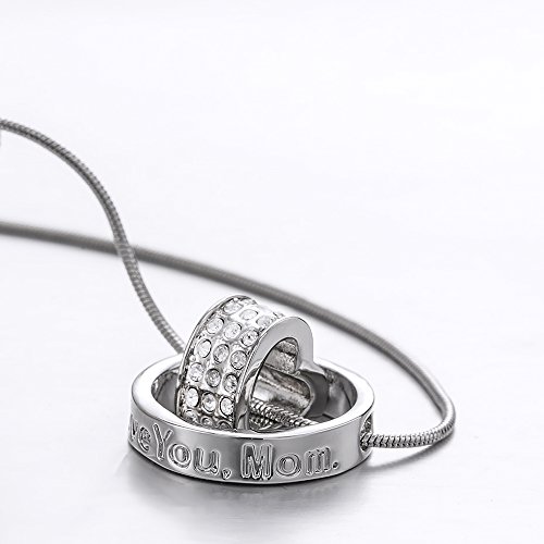 -. Title : Marenja Women's 18k White Gold Plated, Austrian Crystal Heart Pendant Necklace Engraved with "I Love You, Mom.", 40-45cm