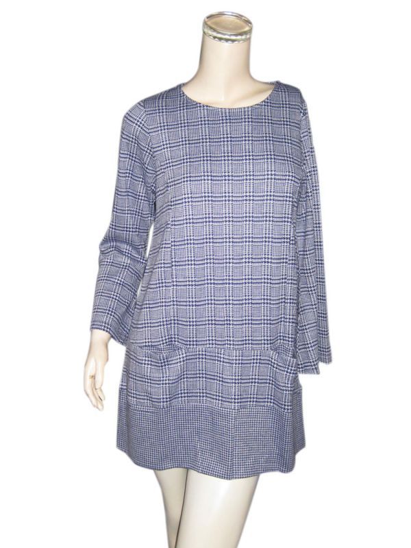 チュニック ワンピース ストレッチ素材 チェック 格子 千鳥 ポケット